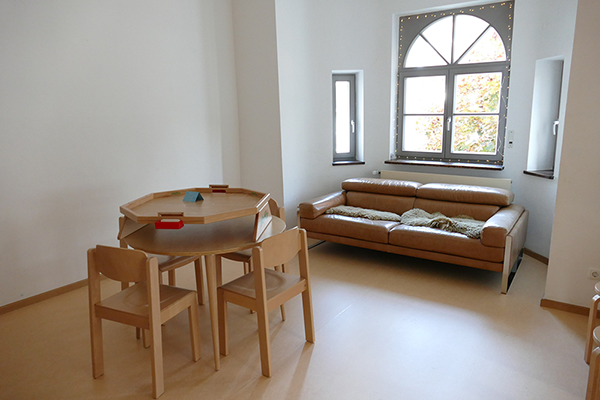 Hier wird man bald auf einem gemütlichen Spielteppich basteln, lesen und bauen können.