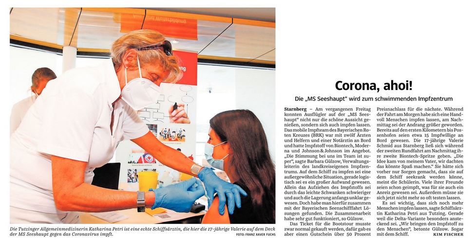 Alois Schweier aus Grafrath war einer der ersten, der das Angebot nutzte. Er war extra wegen der Impfaktion an Bord gegangen. "So verbinde ich das Angenehme mit dem Nützlichen", meinte er, nun mit dem gutem Gefühl sich selbst und auch andere geschützt zu haben. Die meisten an Bord waren schon geimpft, aber 12 Passagiere konnten so noch die gute Gelegenheit nutzen.