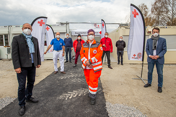 Hier ein Bild von der Eröffnung: Impfzentrum Herrsching (v.l.): Bürgermeister Christian Schiller, Dr. Richard Aulehner, Markus Möbius (Stv. Bereichsleiter Einsatzdienste BRK Starnberg), Georg Rötzer (Bereichsleiter Einsatzdienste BRK Starnberg), Nicole Scheibenpflug (Stv. Kreisbereitschaftleiterin BRK Starnberg), Jan Lang (Kreisgeschäftsführer BRK Starnberg), Roland Schwankhart und Landrat Stefan Frey.