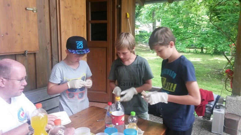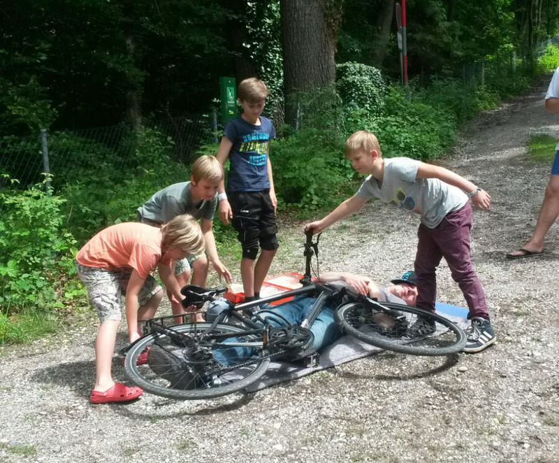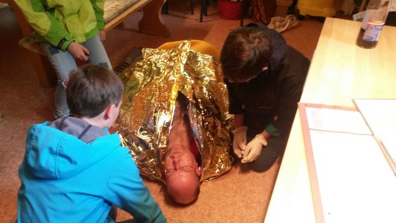 Die Kids mussten am Samstag einen Patienten nach Fahrradsturz und einen weiteren Patienten mit Bienenstich versorgen. Am Sonntag standen dann thermische Schäden durch Hitze und Kälte auf dem Programm. Das Erlernte konnte gleich an den Mimen ausprobiert werden.