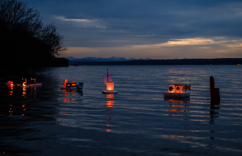 Über 100 Kinder kamen mit ihren Eltern an den See um das scheue und geheimnisvolle Wasserwesen zu bestaunen. Um ihm den Weg zu weisen, hatten viele Kinder ein selbstgebasteltes Wasserfahrzeug mit Kerze dabei, das in der Dämmerung zu Wasser gelassen wurde. Dies sorgte zusammen mit Lagerfeuern und vielen Fackeln für eine besonders stimmungsvolle Atmosphäre. Während sich alle Gäste mit Glühwein, Kinderpunsch, Würstl und Waffeln stärkten, warteten die Kinder am Ufer auf den Wasserwichtl. Sie riefen immer wieder „Wasserwichtl! Wasserwichtl!“, bis sich endlich das Wasser erhellte und der Wichtl aus den geheimnisvollen Tiefen des Ammersees kam. Er beantwortete die Fragen der Kinder und brachte auch eine Geschichte mit, in der er von seiner Begegnung mit seinem neuen Freund, Karl dem Krokodil, erzählte.