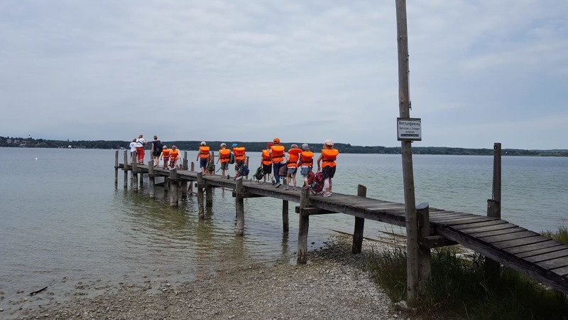21 interessierte und neugierige Kinder haben sich seit Tagen auf diesen Ausflug gefreut. Gleich zu Beginn haben sie sich erst einmal mit ihrer Brotzeit gestärkt um uns danach, über alles was sie währenddessen enteckt haben, auszufragen. Von den Hebesäcken, über das San-Material bis zur Wasserretter- und Tauchausrüstung wollten sie alles erklärt haben. Damit es nicht zu theoretisch wurde, durften sie danach einiges ausprobieren. Trage tragen, Wurfsack werfen oder mit der Tauchersprecheinrichtung "telefonieren", die Kinder hatten dabei richtig viel Spaß. Und zum Schluss gab es das große Highlight, eine Fahrt mit dem Rettungsboot. Alle Kinder waren ganz aufgeregt, freuten sich aber wahnsinnig darauf. Für uns war es selbstverständlich uns Zeit dafür zu nehmen, wenn man danach in glückliche Kinderaugen schaut. Wir freuen uns auf das nächste Jahr.