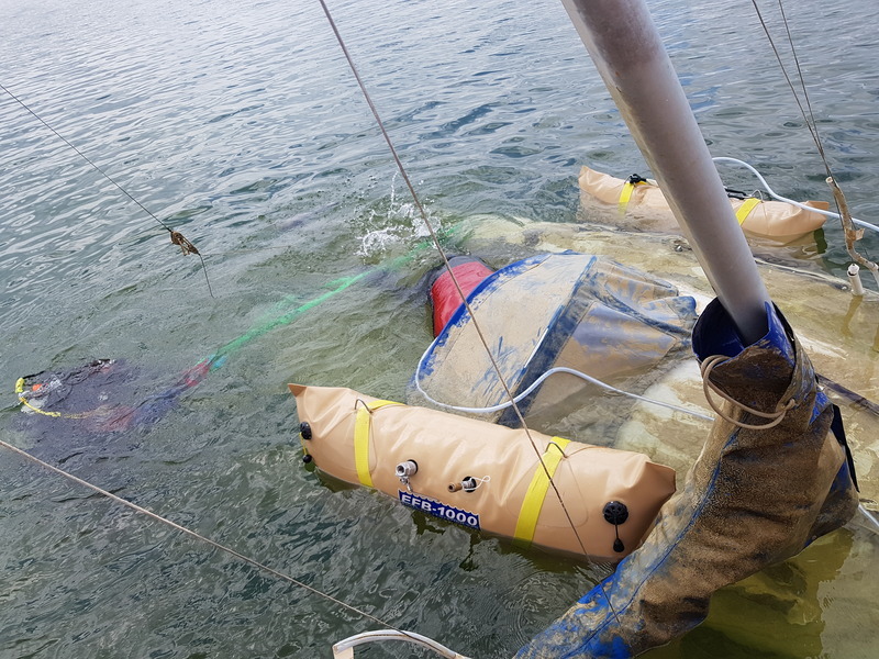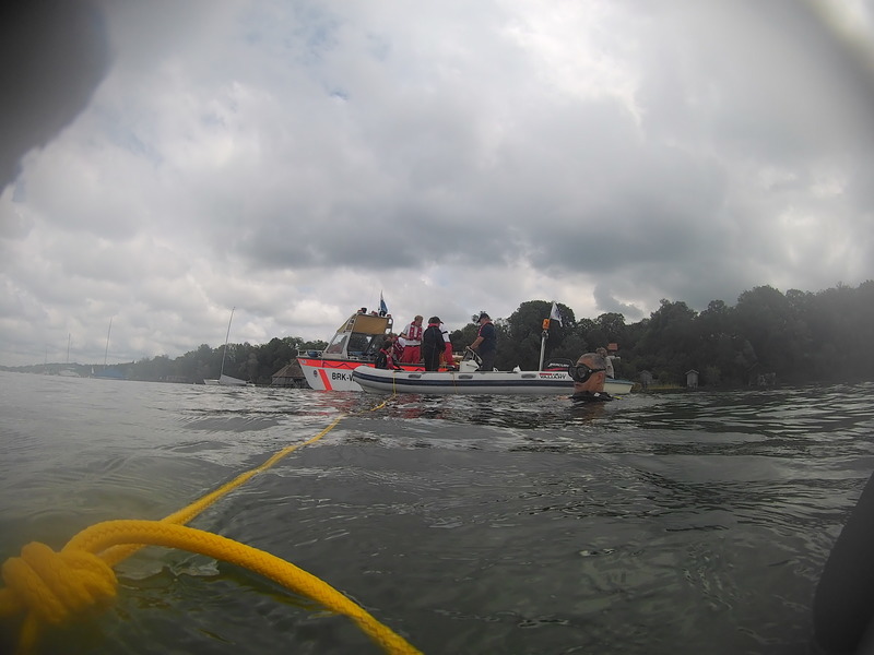 Hierfür haben unsere Rettungstaucher zuerst einen Hebesack mit 250 kg Auftrieb am Mastfuß befestigt um ein Umkippen des Bootes zu verhindern. Im Anschluss wurden 3 weitere Hebesäcke mit je 500 kg Auftrieb auf der Steuer- und Backbordseite sowie am Heck befestigt und langsam gleichmäßig mit Pressluft befüllt. Als das Boot hochstieg und das Heck über der Wasseroberfläche war, wurde das Wasser aus dem Inneren des Bootes gepumpt und im Anschluss das Boot zur Station geschleppt und auf dem Trailer verladen. Im Einsatz waren neben der regulären Wachmannschaft drei Rettungstaucher unserer Ortsgruppe, die von einem Rettungstaucher der Wasserwacht Starnberg und einem Rettungstaucher der Wasserwacht Eichenau unterstützt wurden und die beiden Rettungsboote aus Buch und Stegen. Ferner haben uns die Kameraden der Freiwillige Feuerwehr Grafrath unterstützt, die uns an diesem Tag besucht haben.