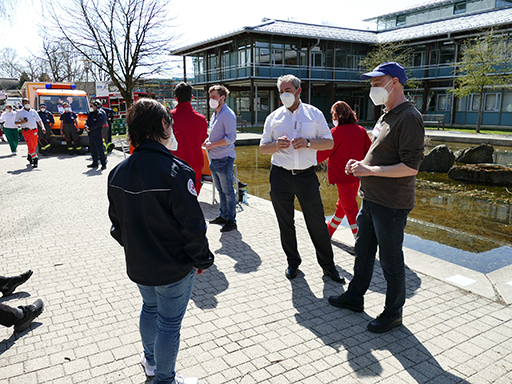 Sonderimpftag im Landratsamt 10 Stunden 1.930 Impfungen Der Sonderimpftag im Landratsamt hat gezeigt, was möglich ist, wenn genügend Impfstoff vorhanden ist und wenn im Landkreis alle zusammenarbeiten. In zehn Stunden wurden 1.930 Impfungen durchgeführt und rund um das Landratsamt waren fröhliche und entspannte Menschen zu sehen: Geimpfte Menschen sowie Helfer und Einsatzkräfte, für die die Teilnahme an dem Sonderimpftag eine Herausforderung aber gleichzeitig auch Herzensangelegenheit war. Gemeinsames Ziel: Zurück in die Normalität! Landrat Stefan Frey: „Das ständige Drängen um mehr Impfstoff für den Landkreis hat sich gelohnt. Jetzt können wir unsere Impfstatistik endlich aufbessern. Mit der Priorität 1 sind wir durch, wir haben heute rund 750 Erzieher*innen und Lehrer*innen geimpft und mit der 2. Priorität haben wir auch gleich begonnen. Der Tag ist so reibungslos verlaufen, dass wir uns Mittag entschieden haben, kurzfristig weitere Personen anzurufen. Ich bin begeistert. Alle Beteiligten haben Hervorragendes geleistet.“ Der Impfstart am Samstag war um 9.00 Uhr geplant, für diese Zeit waren die ersten von 1.500 Impftermine vergeben. Wie es die Erfahrungen aus dem Impfzentrum Gauting bereits gezeigt haben, können es die Impfwilligen selten erwarten und so standen die ersten bereits vor 8.30 Uhr vor dem Landratsamt. Für die Organisatoren war das deshalb nicht überraschend und man war vorbereitet. Der gesamte Impfvorgang mit Anmeldung, Aufklärungsgespräche durch Ärzte, Impfen, Beobachtung und Terminvergabe für die Zweitimpfung war mit einem Großaufgebot an Einsatzkräften perfekt geplant. Die Abläufe waren so aufeinander abgestimmt, dass es nur selten zu Wartesituationen gekommen ist. Mittags waren bereits 1.000 Dosen Biontech Impfstoff verimpft. Nachdem das schneller ging als erwartet, wurde kurzer Hand beschlossen, weiteren Personen ein Impfangebot zu machen. Schnell wurden Listen aus dem Onlineregistrierungssystem BayIMCO mit den nächsten registrierten Personen der Priorität 2 ausgedruckt und die Betroffenen wurden kurzfristig telefonisch eingeladen. Am Ende des Tages haben 1.930 Personen eine Impfung erhalten. Es wurden 1.715 mal Biontech und 215 mal AstraZeneca geimpft. Zusätzlich zum Impfgeschehen im Landratsamt waren während des Tages auch drei Rettungsfahrzeuge mit Impf- und Beobachtungsteams im Landkreis unterwegs, um 45 bettlägerig Personen zuhause zu impfen. Der Sonderimpftag „Gemeinsam impfen macht StaRK“ im Landratsamt war ein Kraftakt, der sich gelohnt hat. Roland Schwankhart, Verwaltungsleiter des Starnberger Impfzentrum: „Für die Organisation des Impftages hatten wir genau eine Woche Zeit. Erst eine Woche zuvor hatten wir nämlich erfahren, dass wir so viel Impfstoff bekommen werden. Schnell war uns klar, dass wir daraus eine Gemeinschaftsaktion machen wollen. Das Impfzentrum, gemeinsam mit der Ärzteschaft im Landkreis, unterstützt durch die Hilfsorganisationen. Wir waren überzeugt, dass das klappt. Dass die Resonanz so gewaltig ist, und so viele helfen wollen, damit habe ich nicht gerechnet. Es war viel Arbeit, aber es hat ungeheuer viel Spaß gemacht und gezeigt, wie gut sich die unterschiedlichen Akteure ergänzen, wie gut die Zusammenarbeit klappt, wenn es darauf ankommt.“ Der BRK Kreisverband Starnberg, als Betreiber des Starnberger Impfzentrums wurde beim Sonderimpftag im Landratsamt unterstützt von den Feuerwehren im Landkreis Starnberg, der DLRG, dem THW, Klinikum Starnberg und Seefeld, Klinik Dr. Robert Schindlbeck Herrsching, Marianne-Strauß-Klinik, Benedictus-Krankenhäuser Feldafing und Tutzing, dem Ärztlichen Kreisverband Starnberg sowie Mitarbeitern des Landratsamtes. Vom BRK Kreisverband Starnberg waren die Haupt- und Ehrenamtlichen aller Bereiche vertreten. Im Einsatz waren über 300 Helfer, unter ihnen 60 Ärztinnen und Ärzte, medizinische Assistenzkräfte, Altenpfleger und Erzieher. Jan Lang, Kreisgeschäftsführer des BRK Starnberg: „Ich bin überglücklich, dass unser Konzept „Gemeinsam Impfen macht StaRK“ der konzertierten Aktion so vieler Organisationen und Beteiligter aus dem Landkreis Starnberg uns heute so ein großes Stück weiter in Sachen Impfkampagne und so ein großes Stück näher in Sachen Vertrauen, Zusammenarbeit und Wertschätzung gebracht hat. Wir haben heute trotz aller Kurzfristigkeit der Vorbereitung Maßstäbe gesetzt!“ #gemeinsamimpfenmachtstark Hier ein Bericht auf Merkur.de Und ein Bericht auf SZ.de