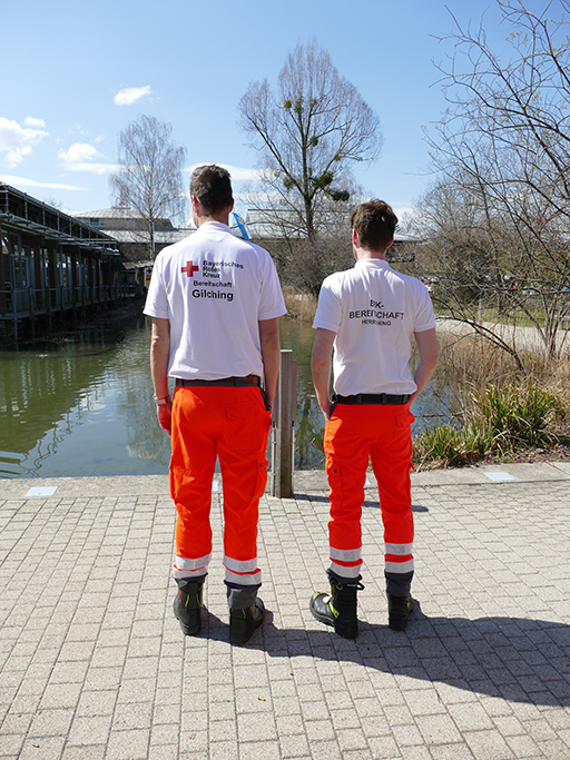 BRK Starnberg Kreisgeschäftsführer Jan Lang (weißes Hemd) und Marcus Wicke, Bereichsleiter Senioren und Pflege (mit blauer Kappe), halfen auch mit.
